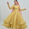 Designed with quality at its core, this lehenga is made from premium fabric that feels luxurious against the skin. The Anarkali style silhouette accentuates your figure gracefully, while the expertly tailored flares create a stunning visual impact with every step. Perfect for long events or ceremonies, the lightweight design of the lehenga ensures you look and feel your best throughout the day or evening.