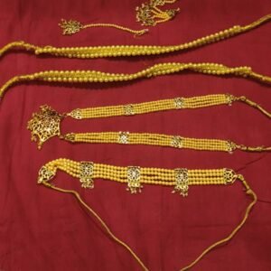 Designed with dancers in mind, this jewelry set is lightweight, ensuring maximum comfort during extended performances. The adjustable belt and necklace provide a snug yet flexible fit, while the earrings and Mangtika add a touch of sophistication without compromising ease of movement. Perfectly crafted for dancers of all ages, this set is a blend of practicality and aesthetic appeal.