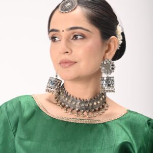 The Green Silk Blouse with Navy Blue Dhoti Pants is thoughtfully crafted for performers who embrace the enchanting art of Kathak. The outfit merges comfort and tradition, offering you a versatile yet stunning ensemble fit for both stage and practice. Whether you’re preparing for a mesmerizing performance or participating in rehearsals, this attire ensures you stand out with elegance.