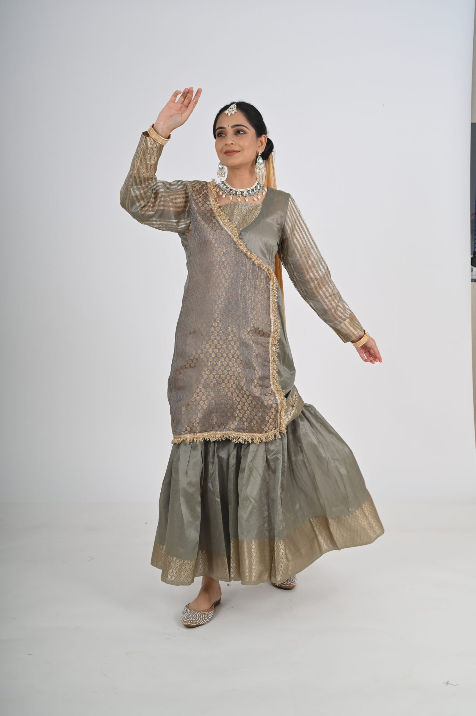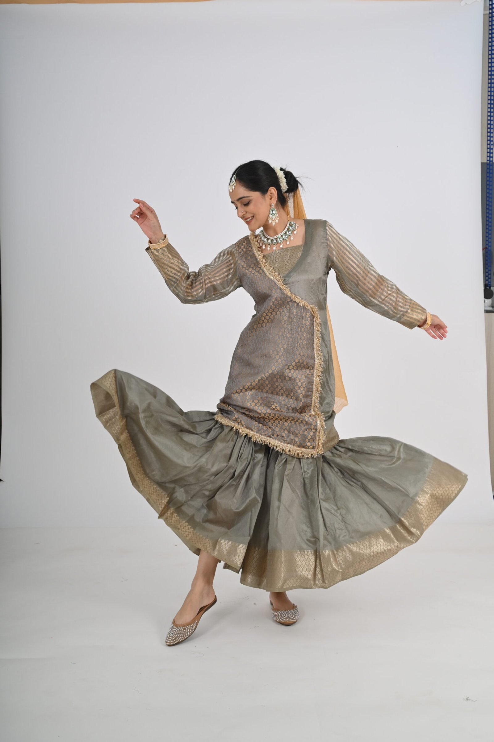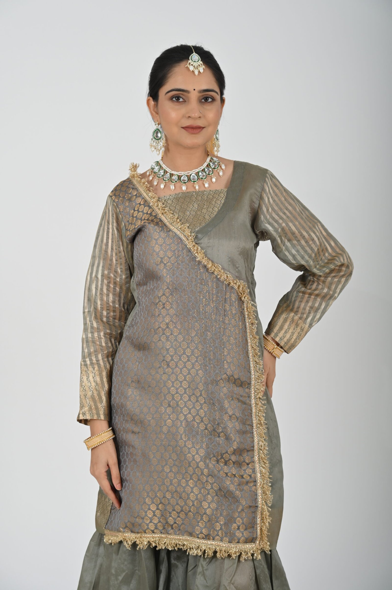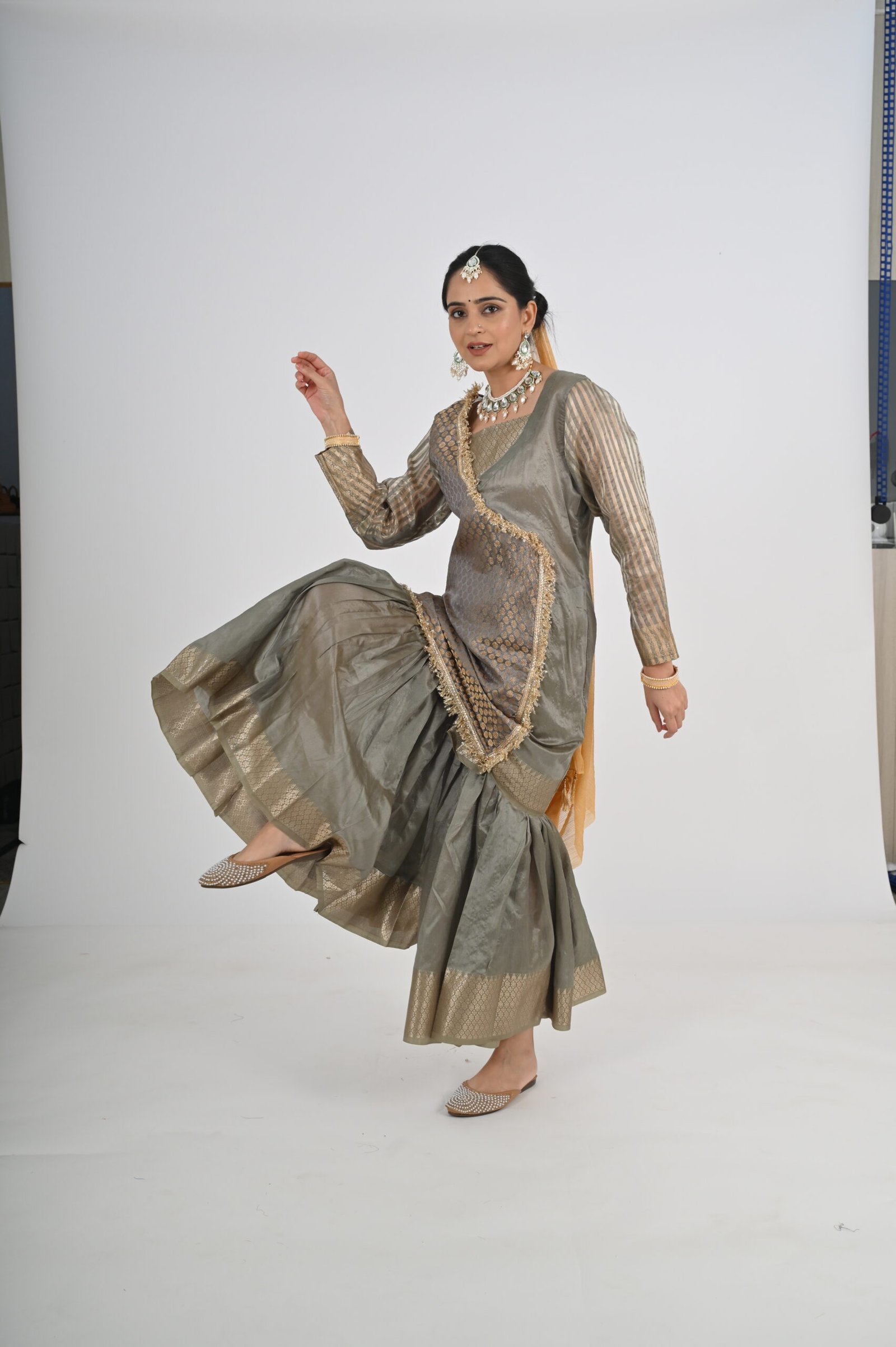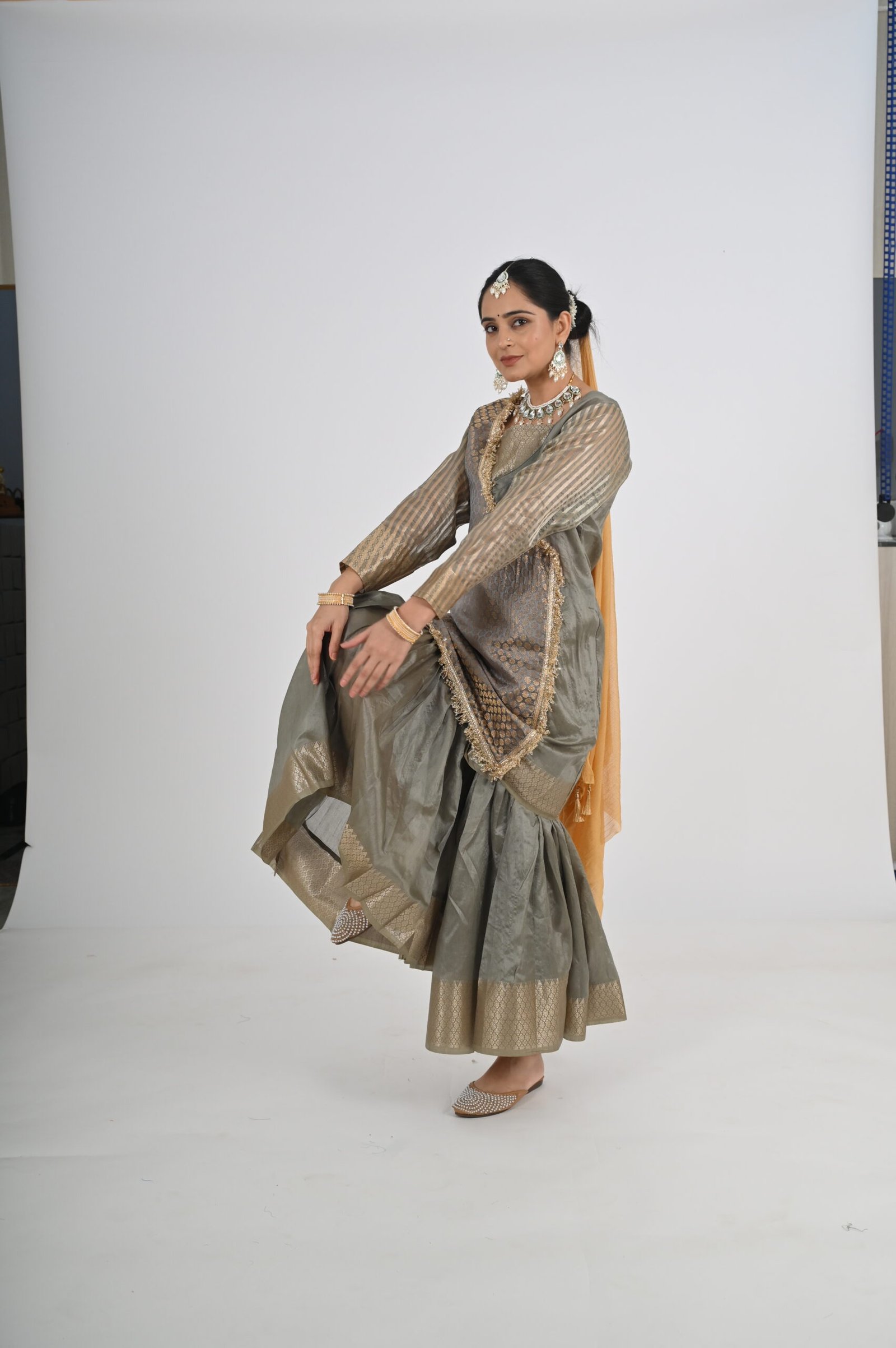 Make every occasion memorable and redefine elegance with this iconic Grey Kameez with Sharara, an outfit that is guaranteed to leave a lasting impression.