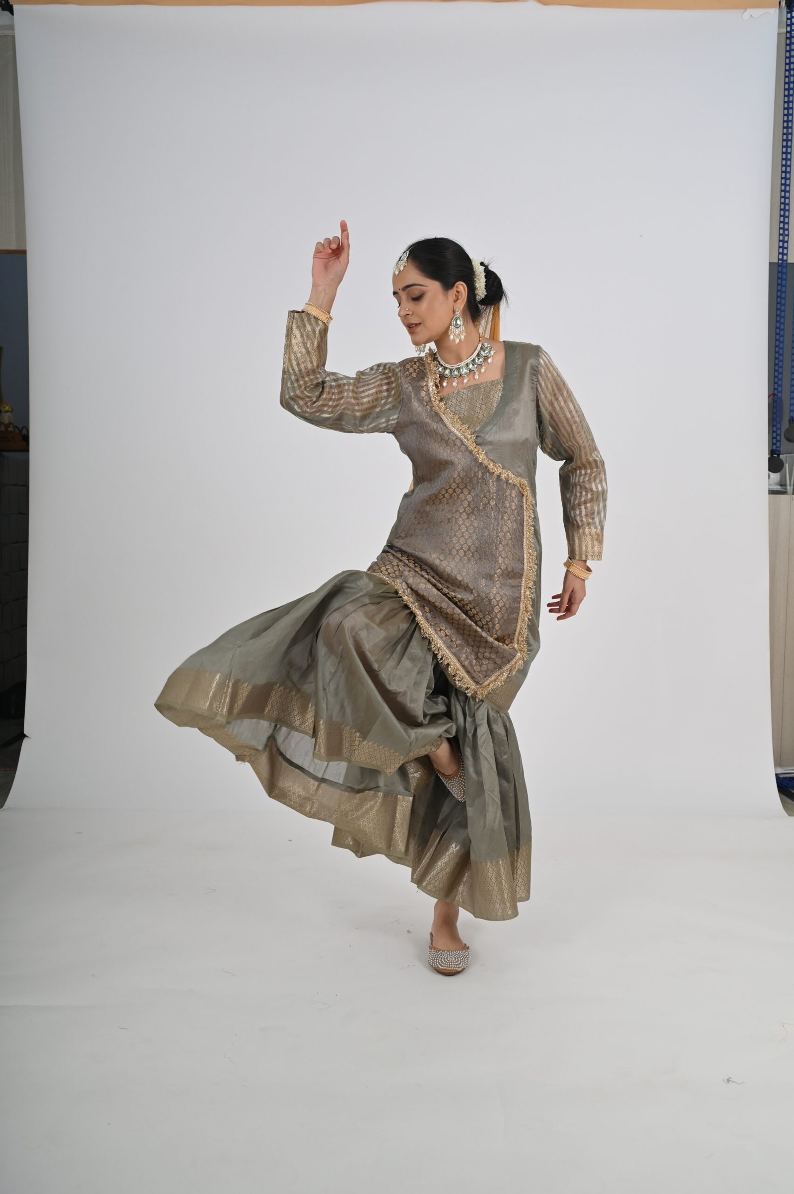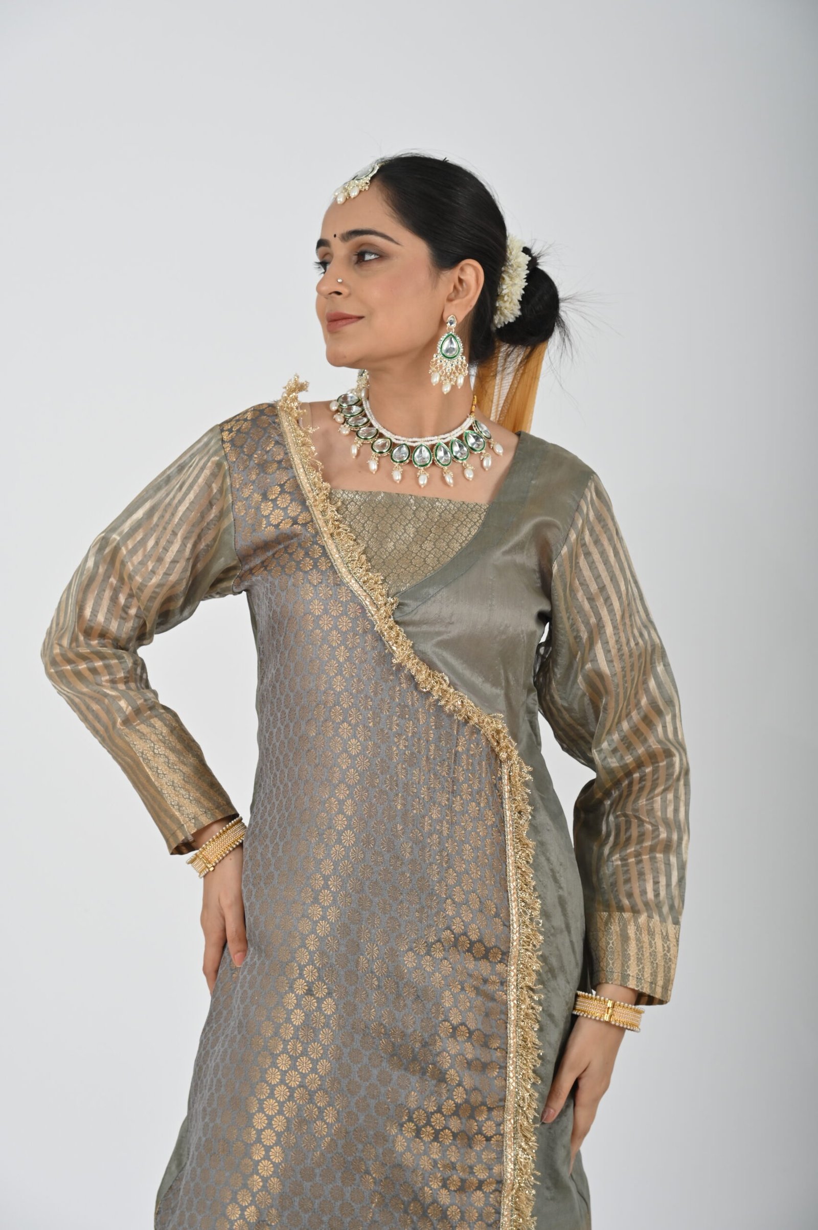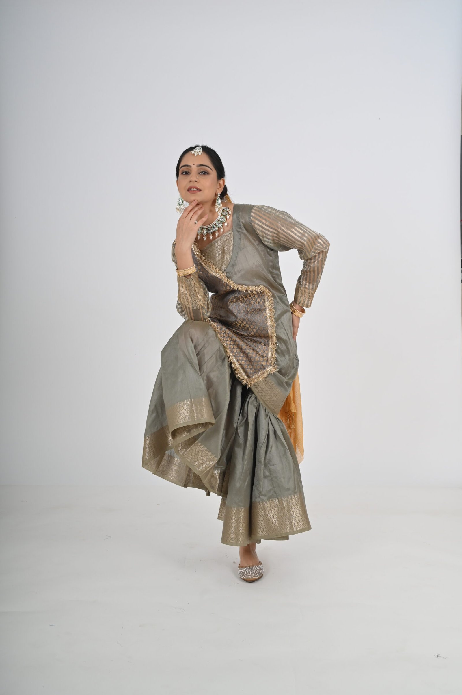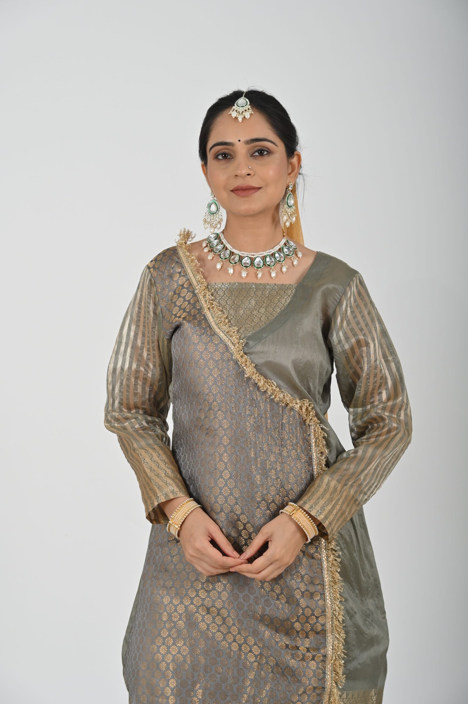 Make every occasion memorable and redefine elegance with this iconic Grey Kameez with Sharara, an outfit that is guaranteed to leave a lasting impression.