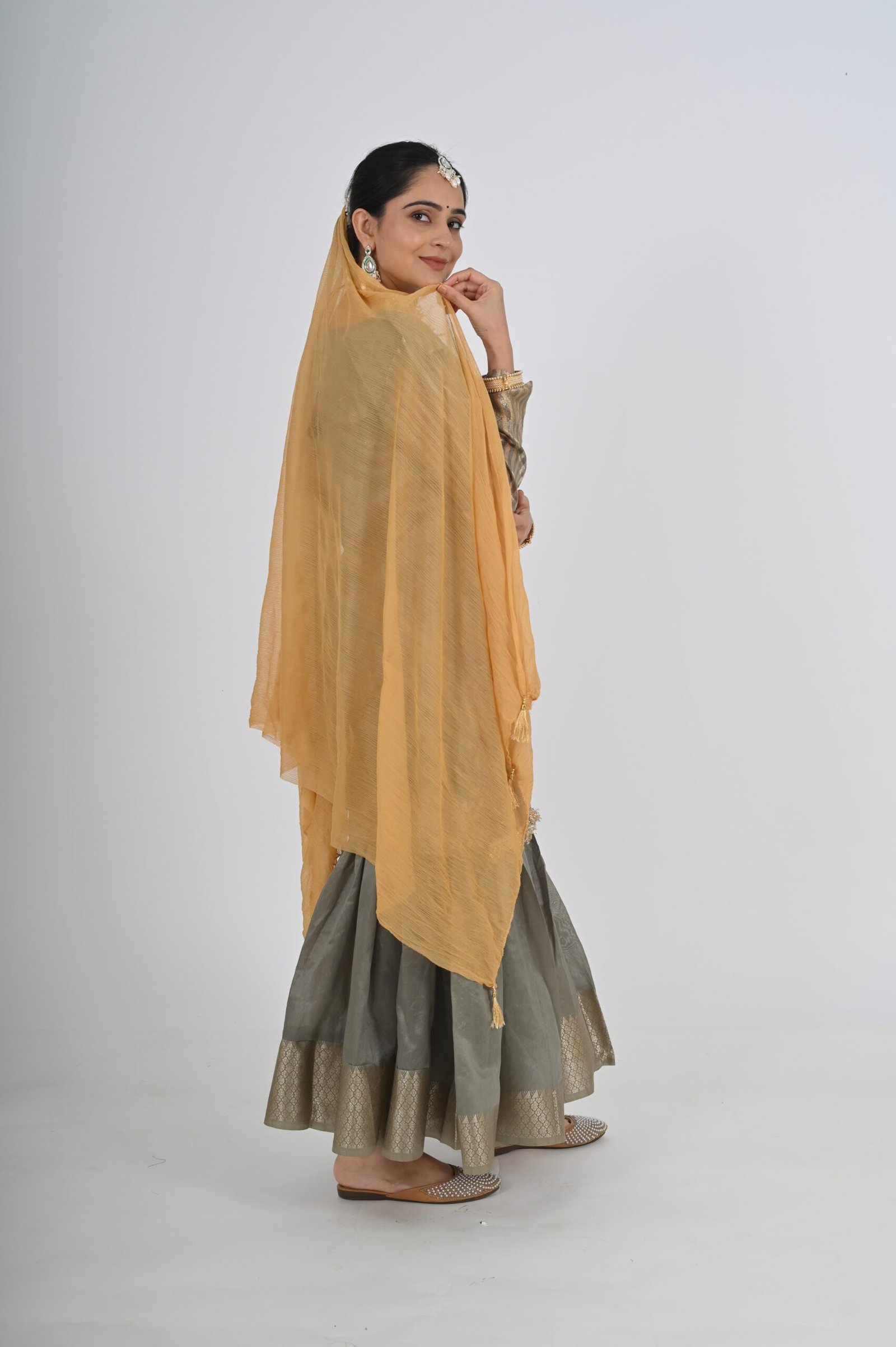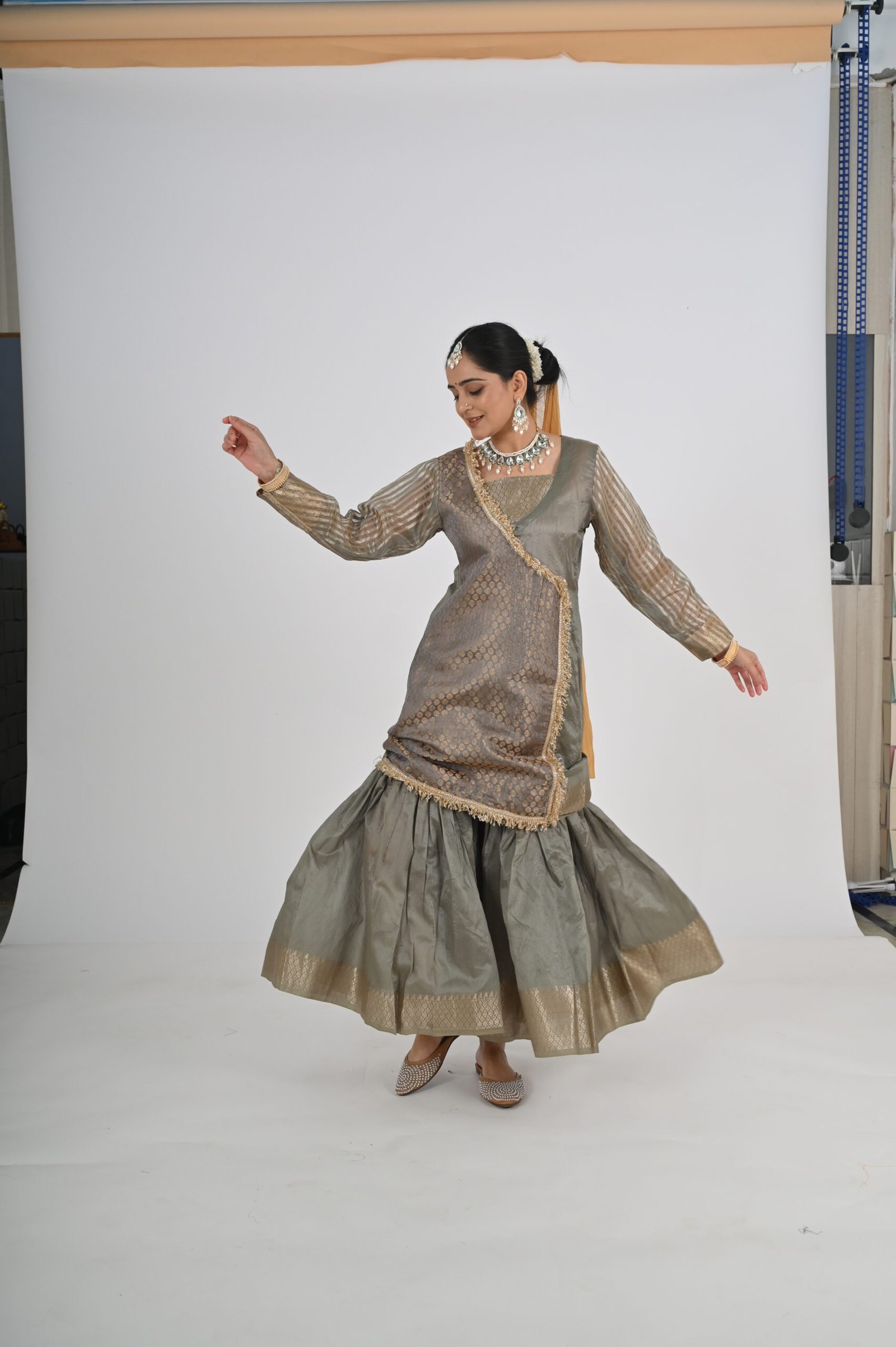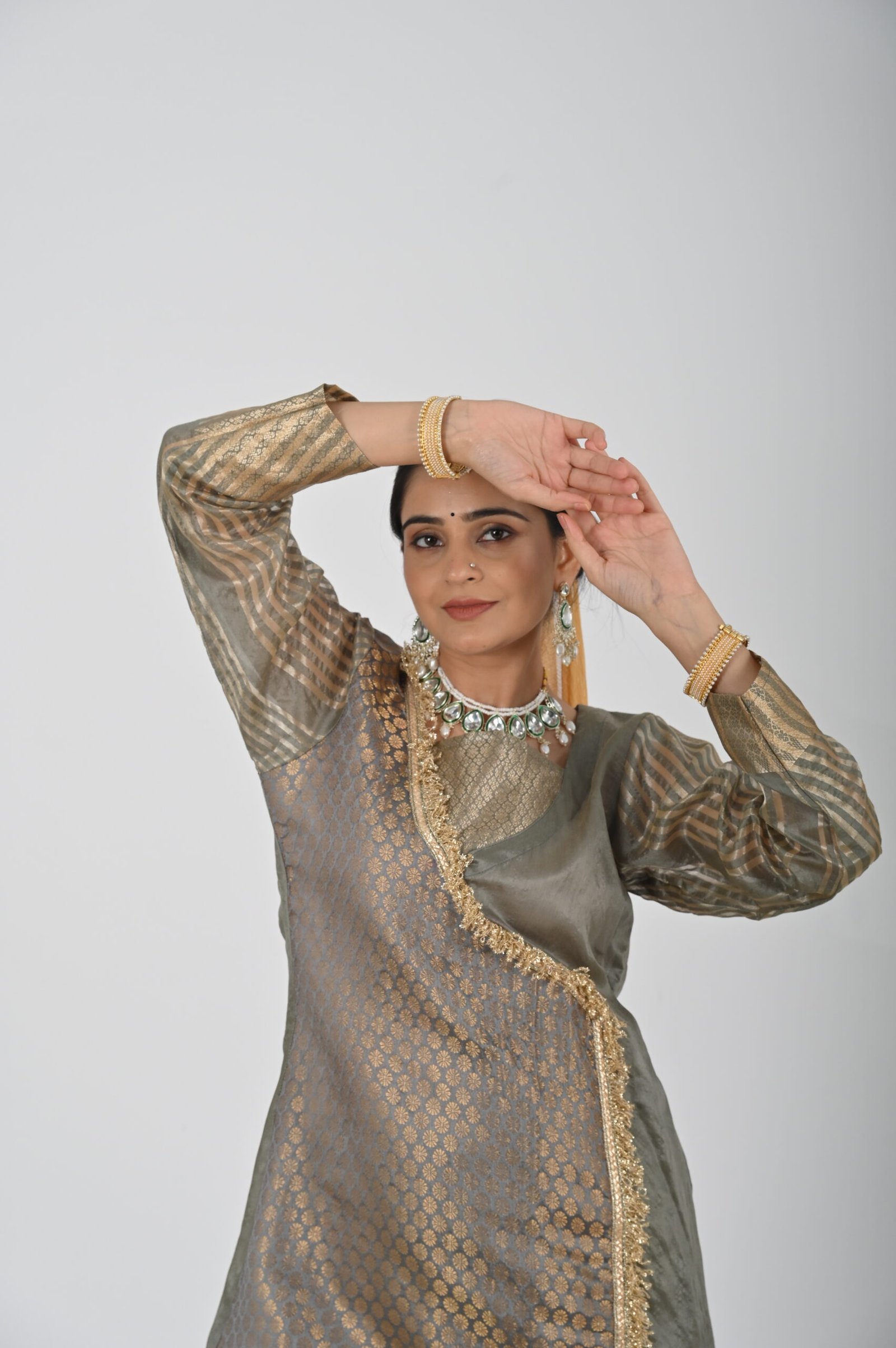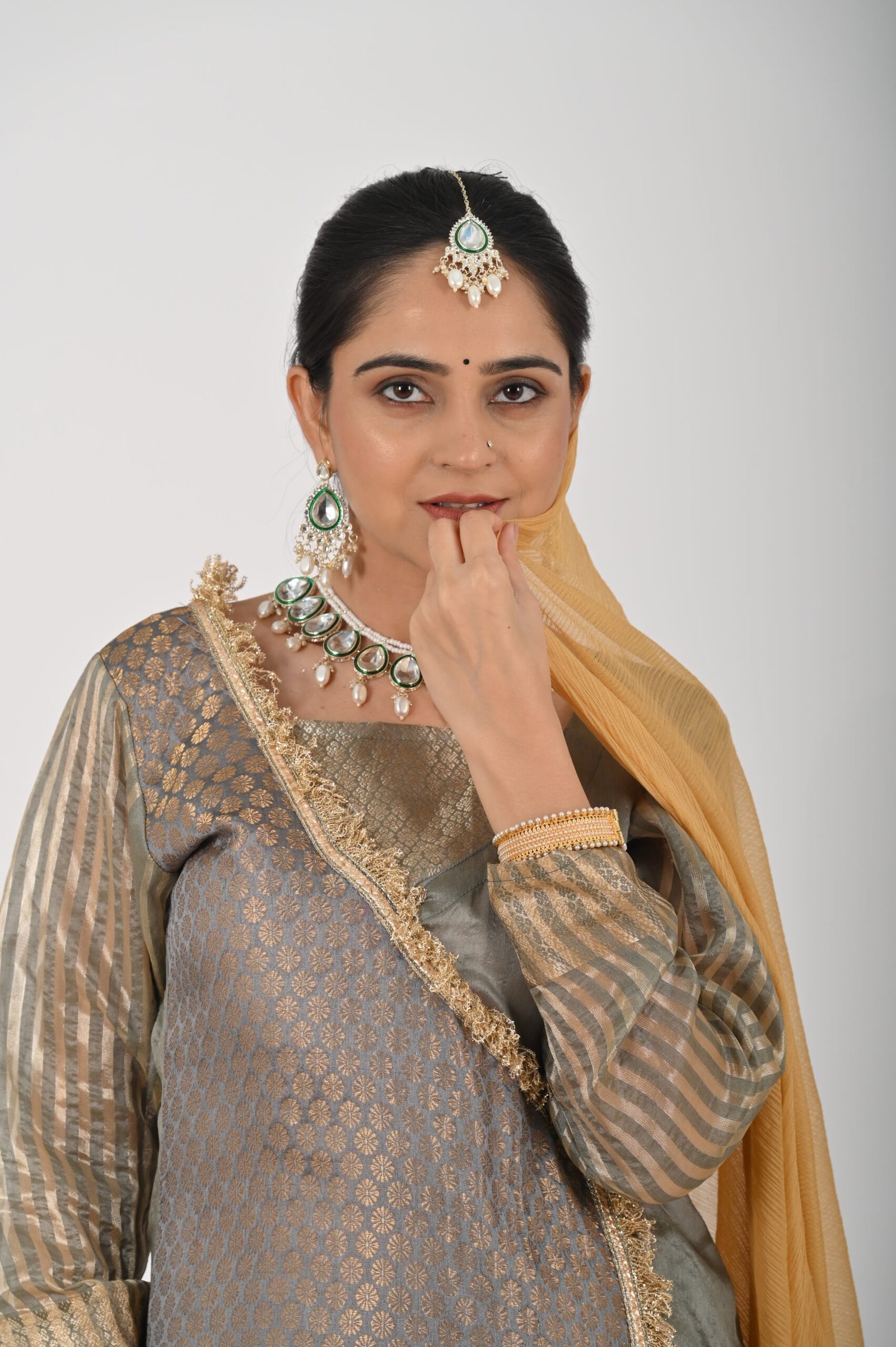 Make every occasion memorable and redefine elegance with this iconic Grey Kameez with Sharara, an outfit that is guaranteed to leave a lasting impression.