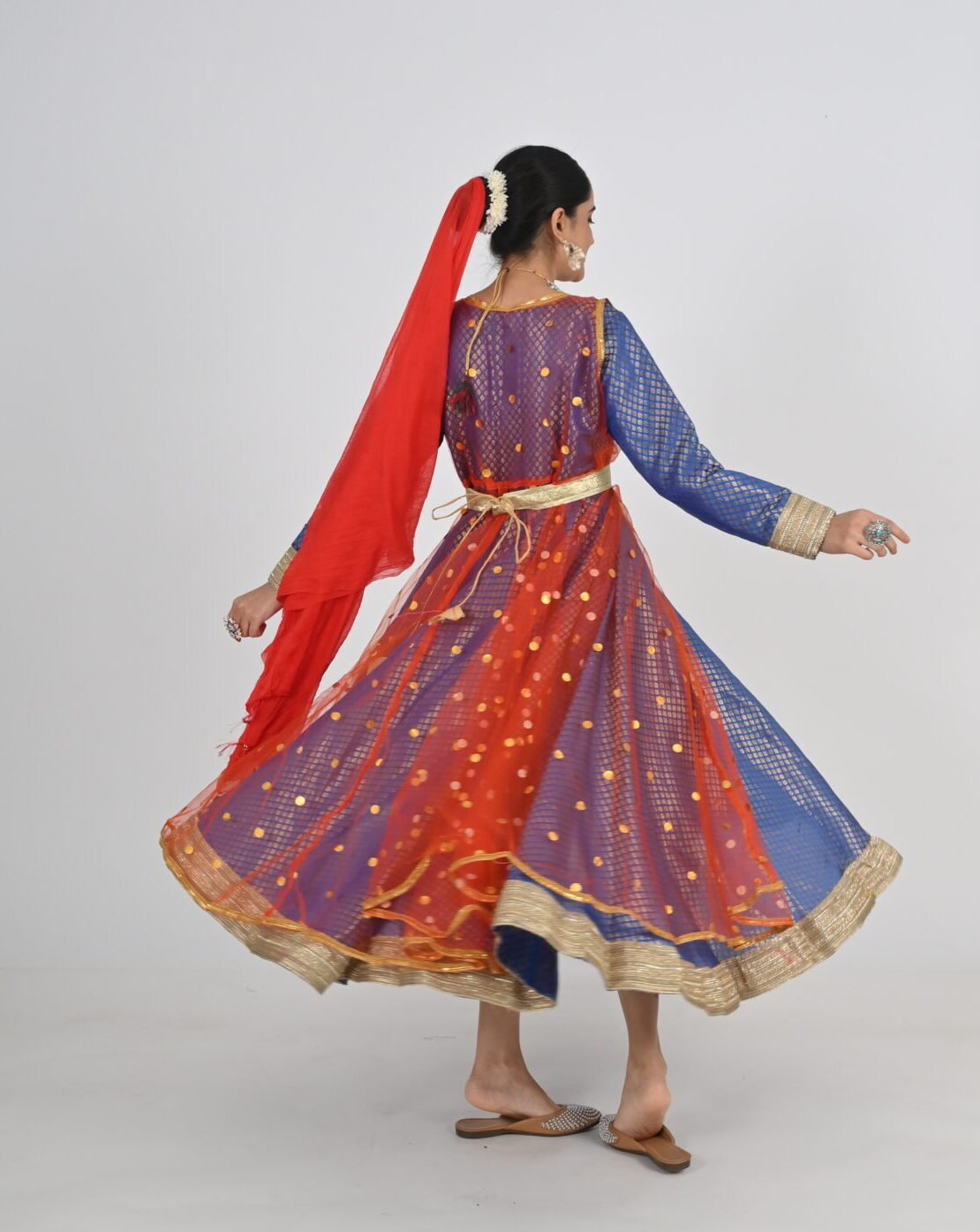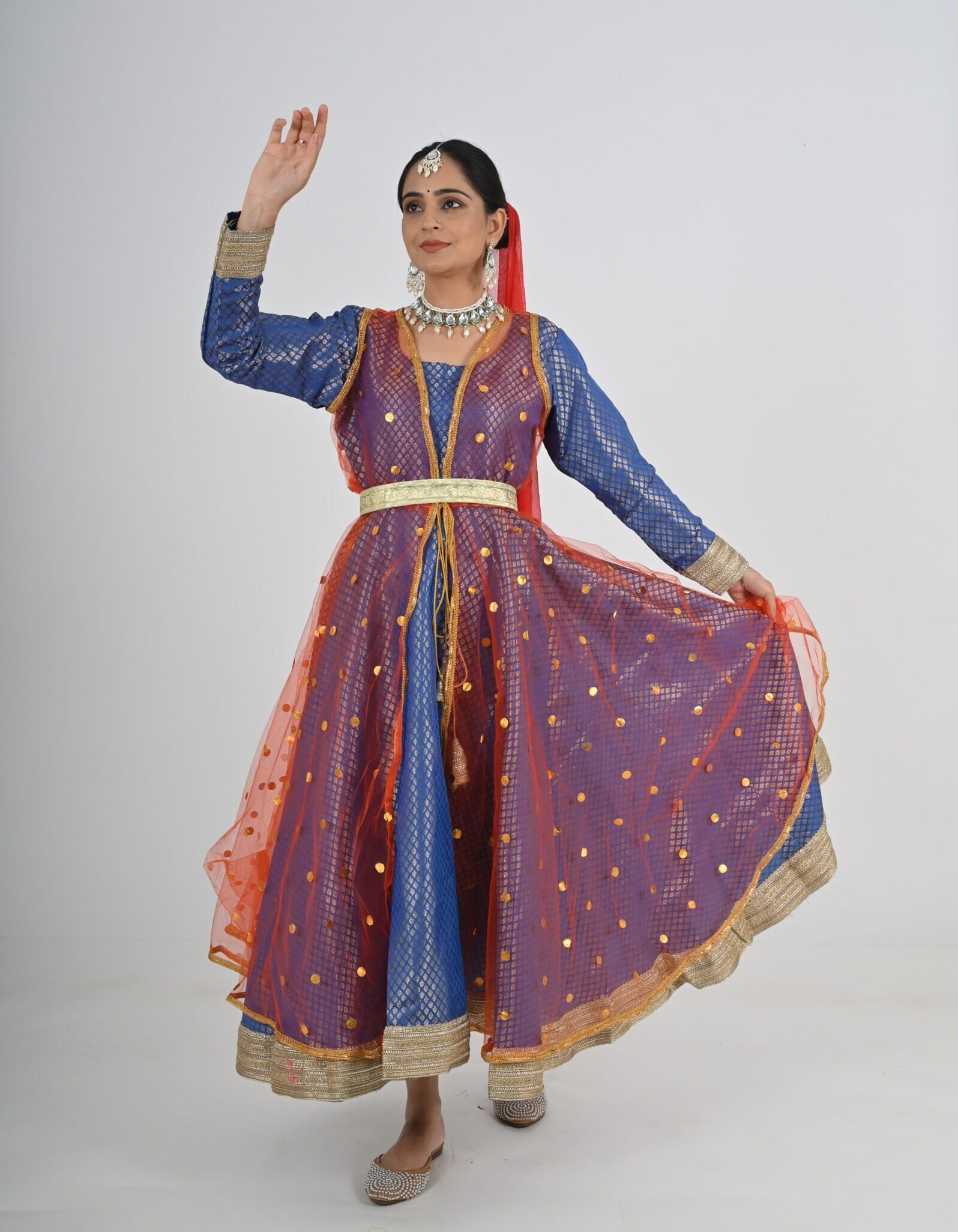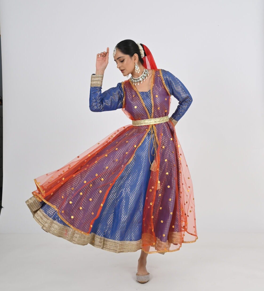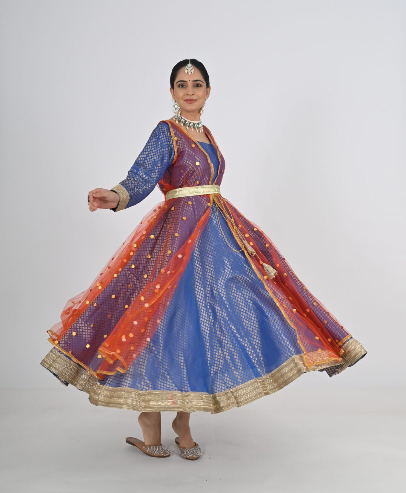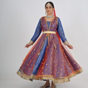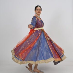 This Kathak Anarkali set is designed to highlight the dancer’s form and movements, ensuring you shine in every twirl and sway. The lightweight material, combined with its traditional yet contemporary design, makes it a standout choice for performances, rehearsals, or cultural events. Experience the perfect balance of beauty, comfort, and practicality with this exceptional dancewear creation.