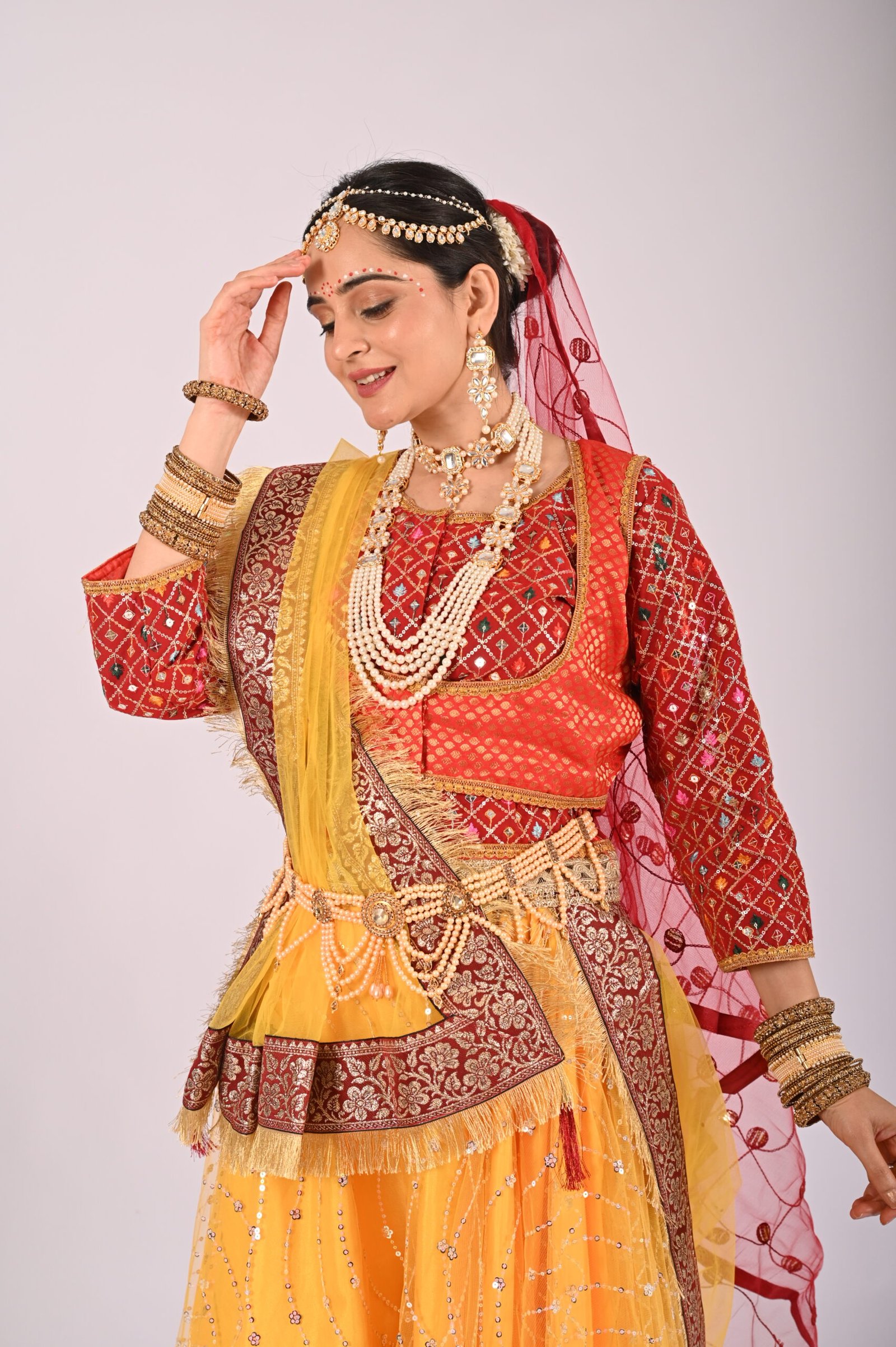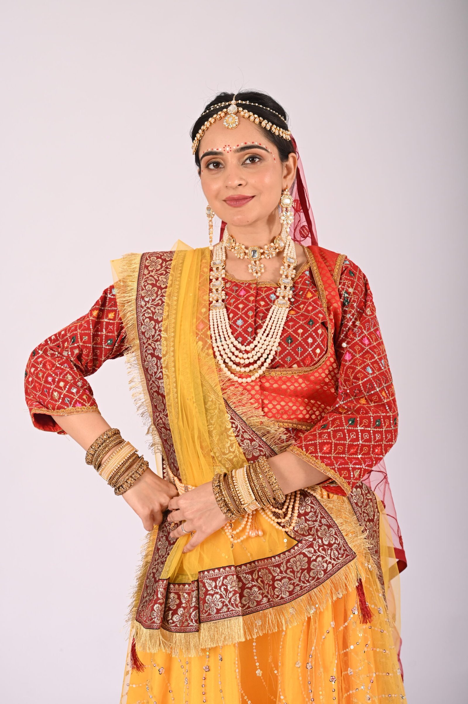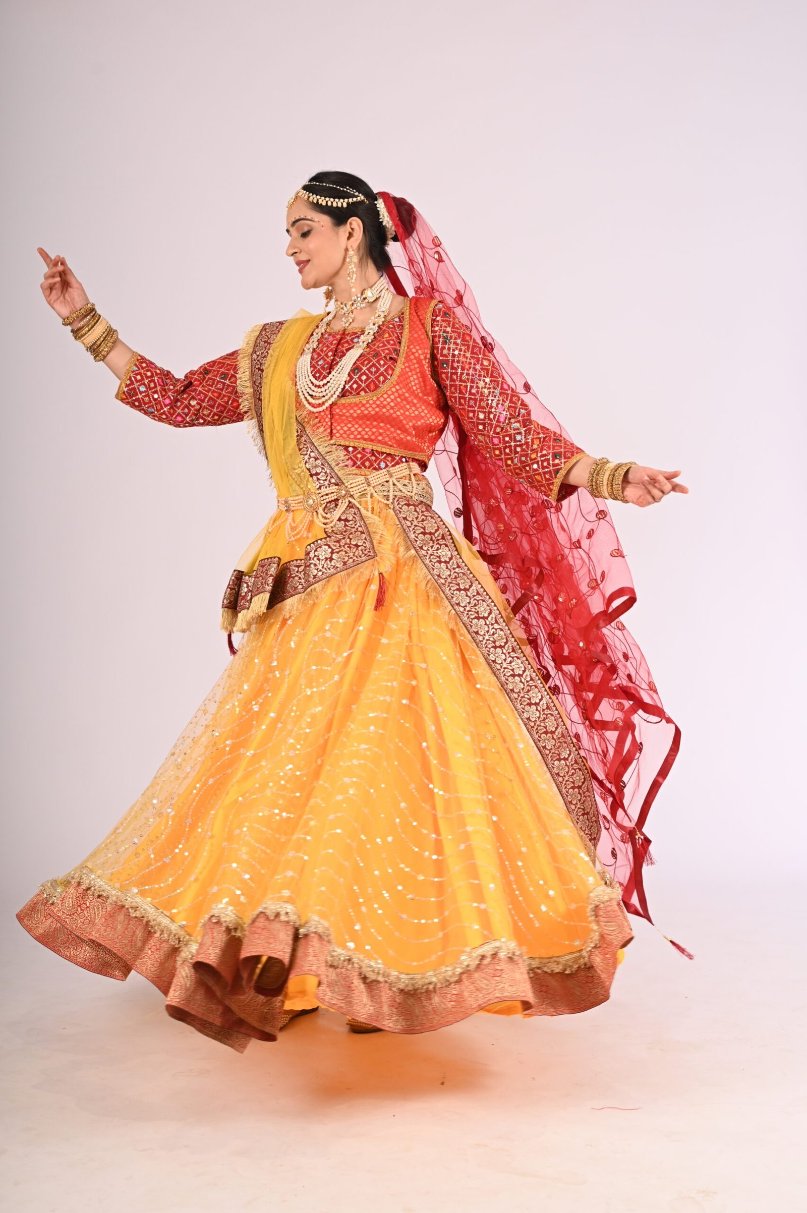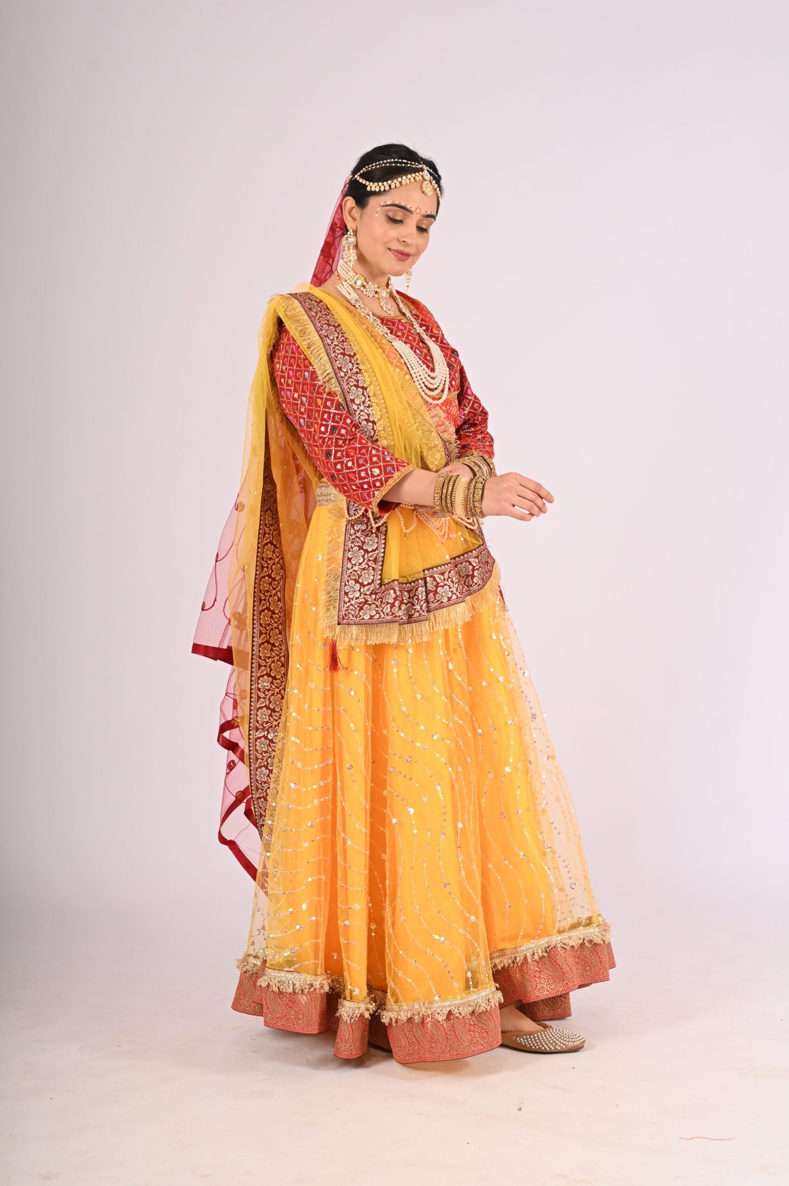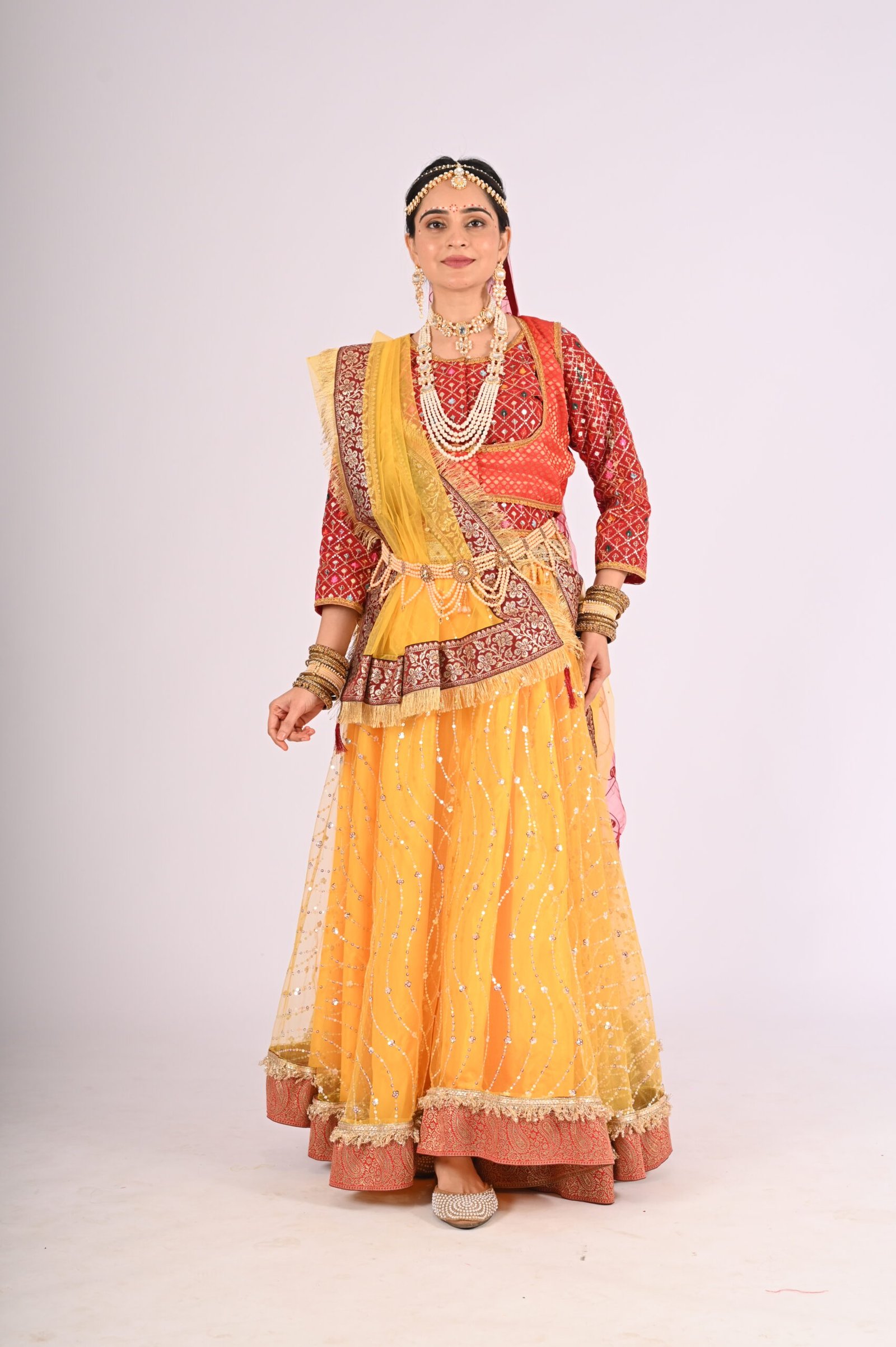 Whether you’re attending weddings, festive celebrations, or cultural performances, this Kathak Radha lehenga set delivers an unparalleled experience of style and charm. Its traditional inspiration combined with modern sensibilities ensures versatility, allowing you to embrace the richness of traditions without compromising convenience and wearability. Pair it with matching jewelry, elegant footwear, and understated makeup for the perfect ethnic ensemble that leaves a lasting impression.