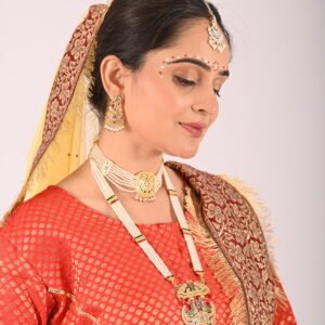 This ensemble spotlight-worthy and designed with meticulous attention to detail. The net lehenga features subtle yet striking embroidery, creating a harmonious balance of grandeur and simplicity. The Red Brocade Blouse boasts rich patterns that accentuate its opulence, ensuring you stand out effortlessly. Completing the look is the Net Dupatta – lightweight, breathable, and easy to drape – enhancing the overall aesthetic with a refined touch.