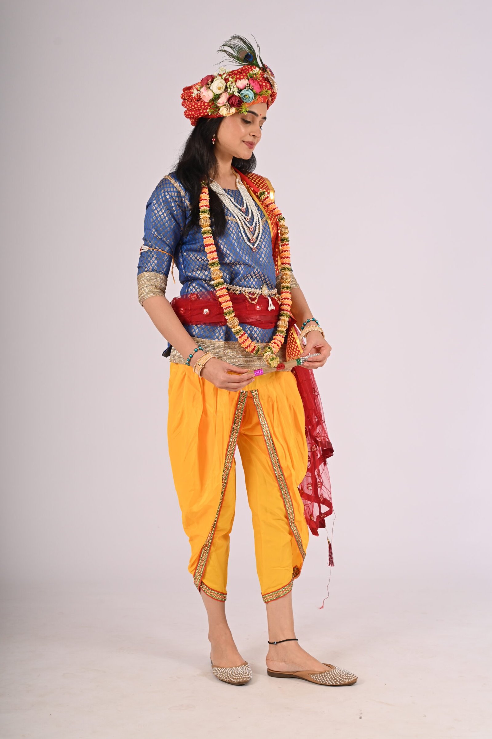 Every element in this costume set is meticulously designed to evoke the grace and charm of Lord Krishna. Whether you’re looking to participate in Janmashtami celebrations, dance performances, or regional plays, this outfit provides:
