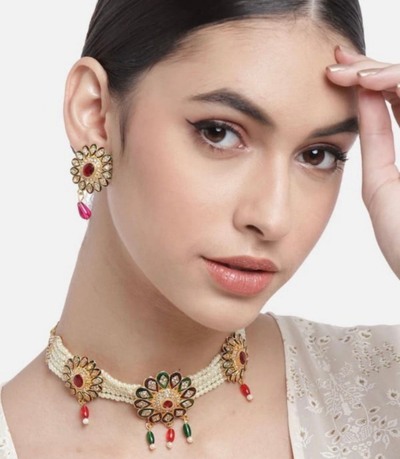 Step into the spotlight with captivating grace! The Moti Choker with Earrings for Kathak Performance is designed to elevate your traditional dance ensemble, embodying elegance and sophistication. Crafted with precision, the choker and earrings pair incorporate shimmering faux pearls (moti) that reflect the rich cultural heritage of classical dance forms like Kathak.