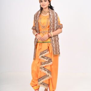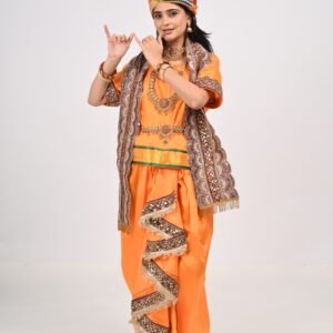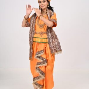 Orange Silk Peshwai Costume with Dhoti, Angarkha, Pagdi & Embroidered Stole
