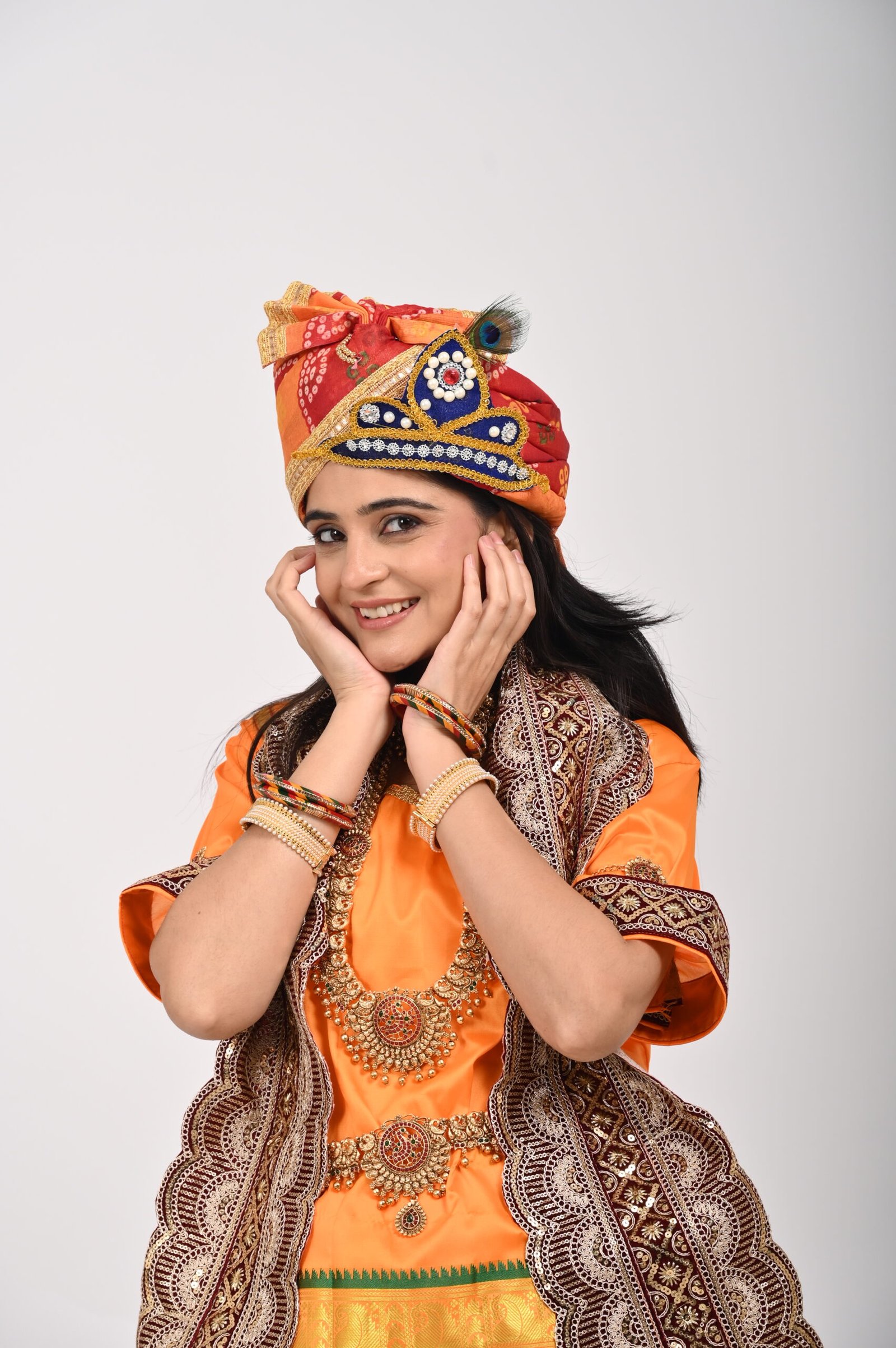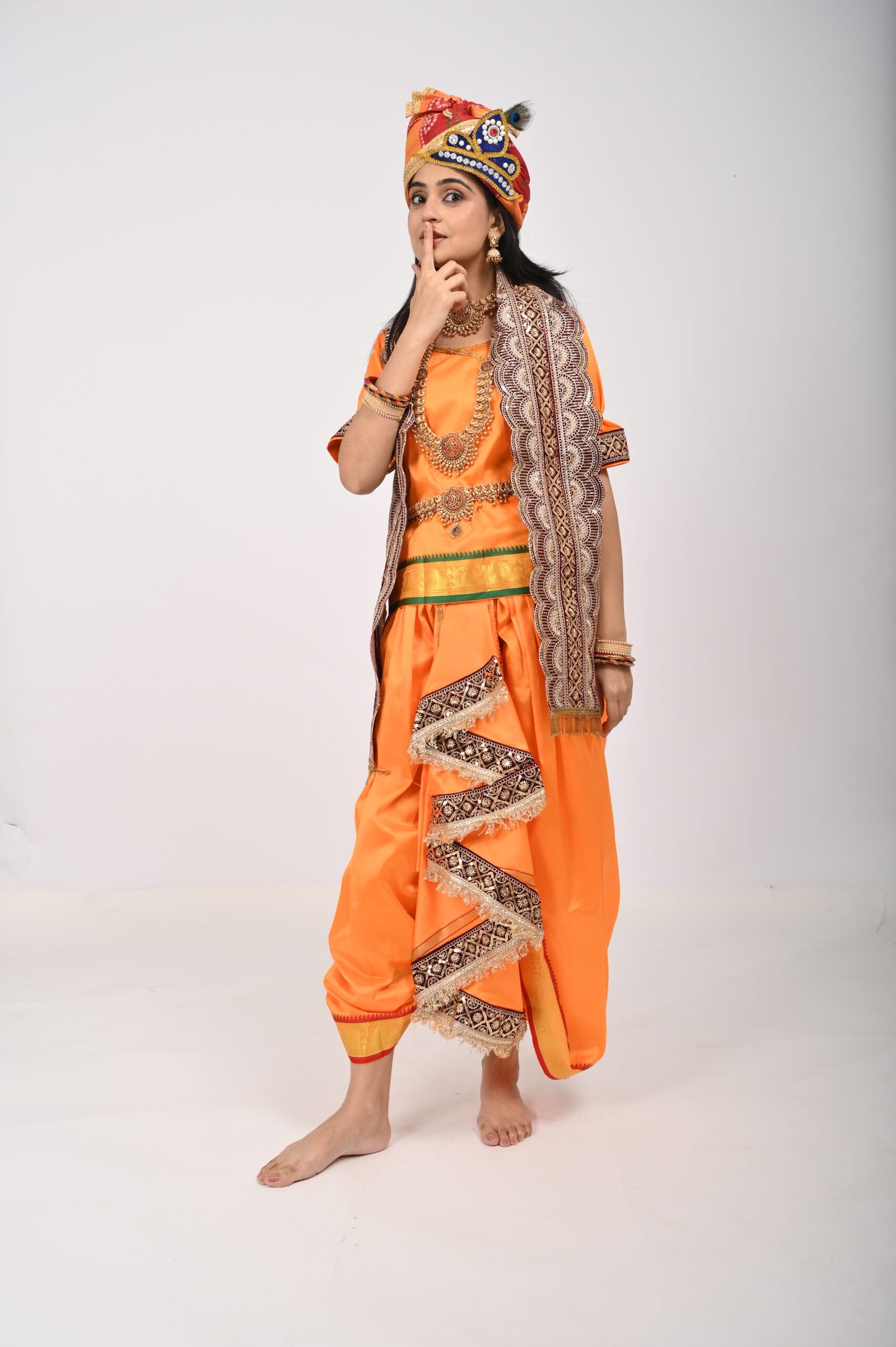 Paired with traditional pagdi (headgear) – ideal for folk & classical dance