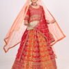 Bright orange silk dhoti with golden border detailing
